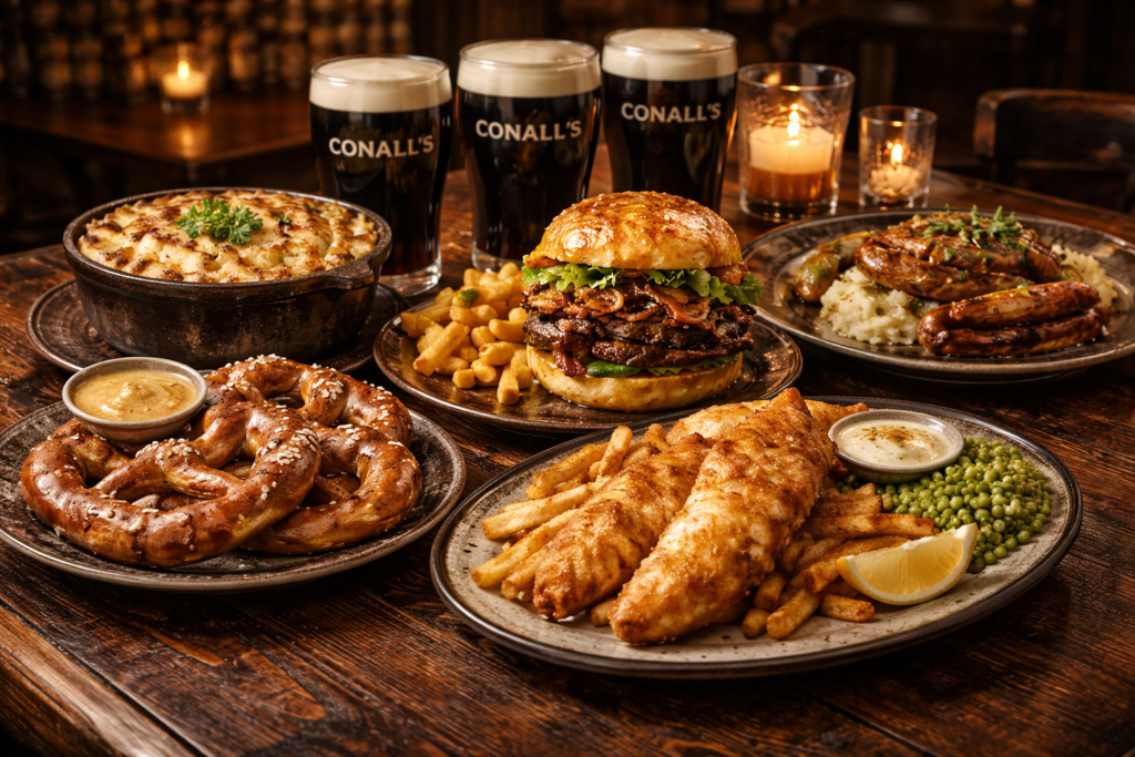 Step inside and experience the heart of Ireland in the city that never sleeps. Conall’s Public House serves hearty, made-from-scratch Irish dishes, hosts lively nights of live music, and pours the finest drinks inspired by the Emerald Isle. Whether you’re here for a comforting meal, a cold pint, or an unforgettable evening of music, you’ll always find a home at Conall’s.